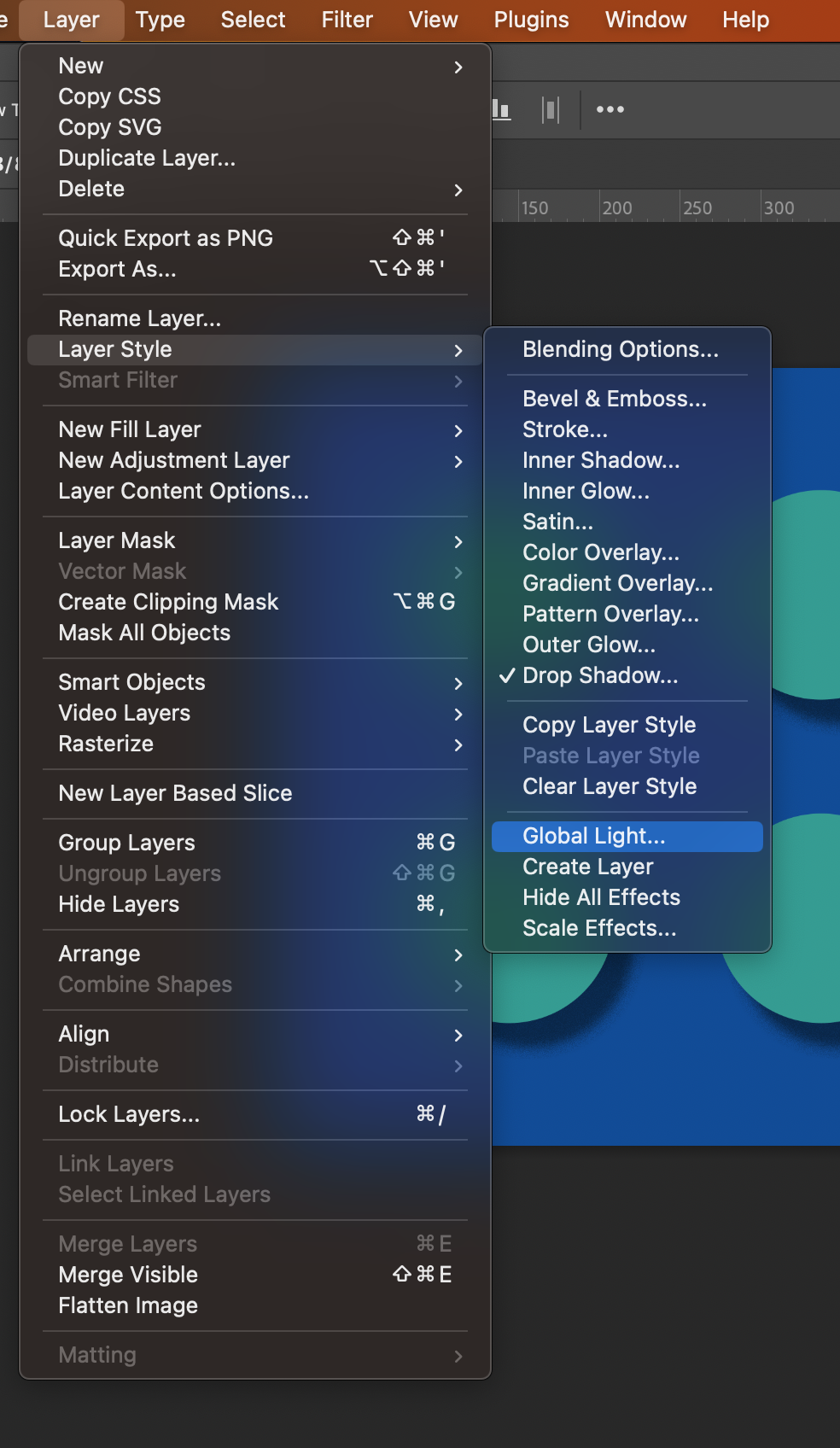 먼저 배경색을 깔고 원을 하나 그린 뒤, Drop Shadow 효과를 적용한다. Use Global Light를 체크한다.