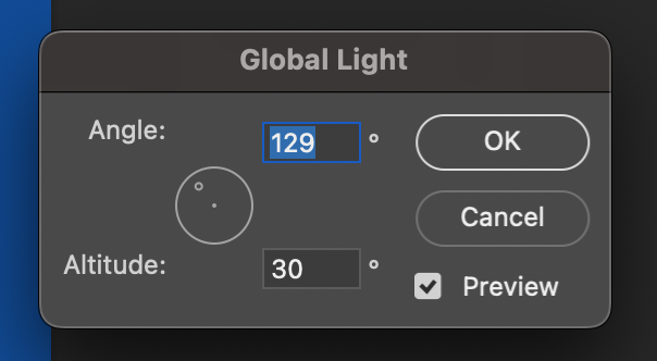 포토샵 상단메뉴 Layer > Layer Style > Global Light를 선택해서 제어할 수도 있다.