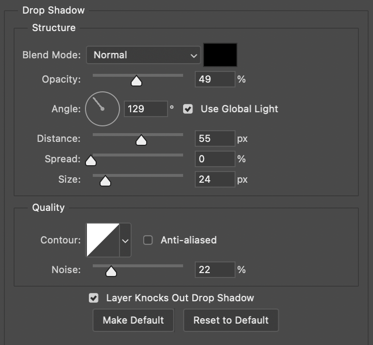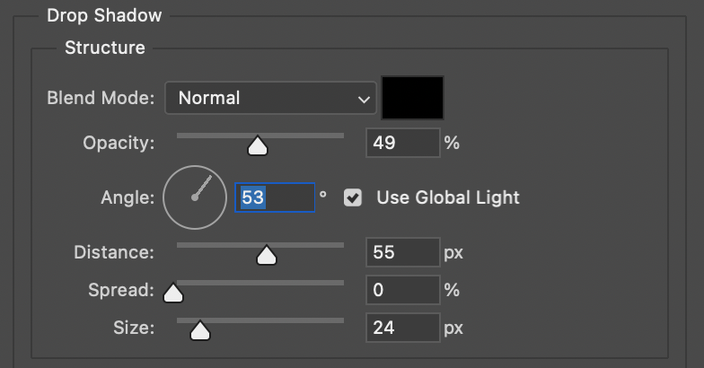 Angle을 조정하면 아래와 같이 모든 레이어의 그림자가 동일하게 변경되는 것을 볼 수 있다.