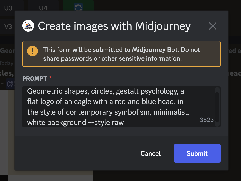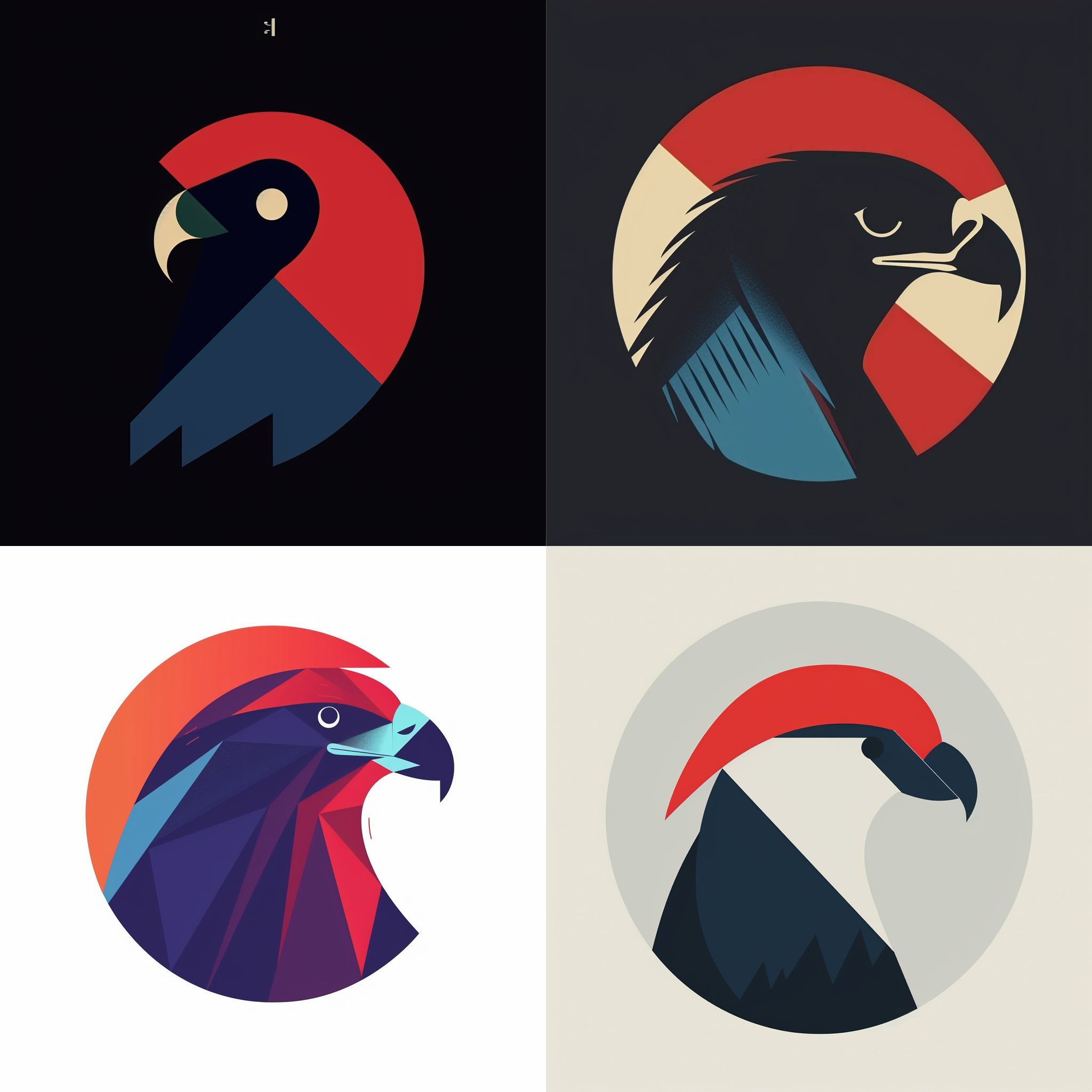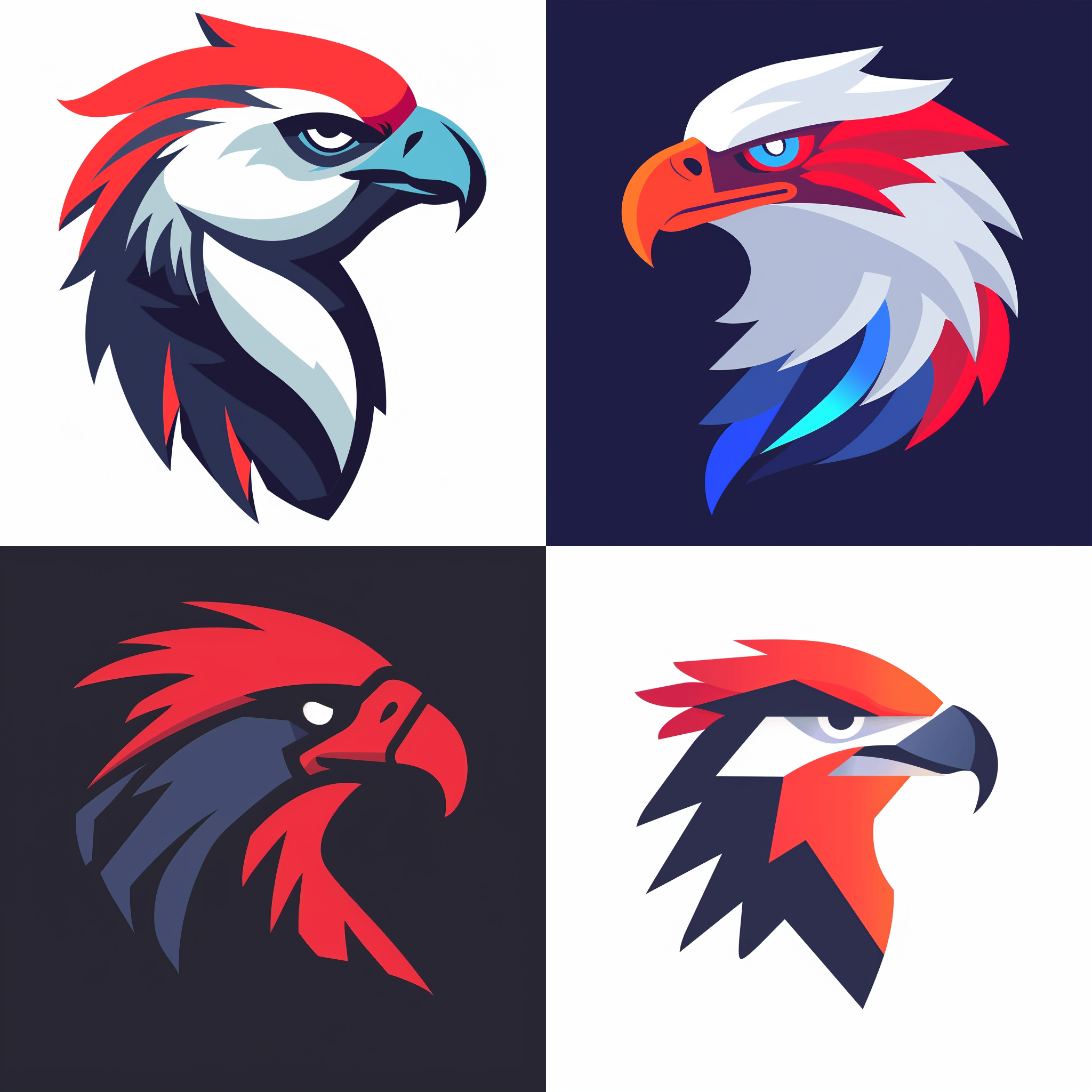 기본 프롬프트 an eagle logo with a red and blue head --style raw을 입력하여 이미지를 생성한다: