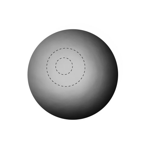 6. 지우개(Eraser Tool)를 선택한 뒤 소프트 라운드(Soft Round), 사이즈 400, 투명도(Opacity) 30%로 설정한 뒤에, 가장 진한 오른쪽 하단 영역을 바깥쪽부터 조심스럽게 지워가며 구의 반사광 영역을 표현해 준다.