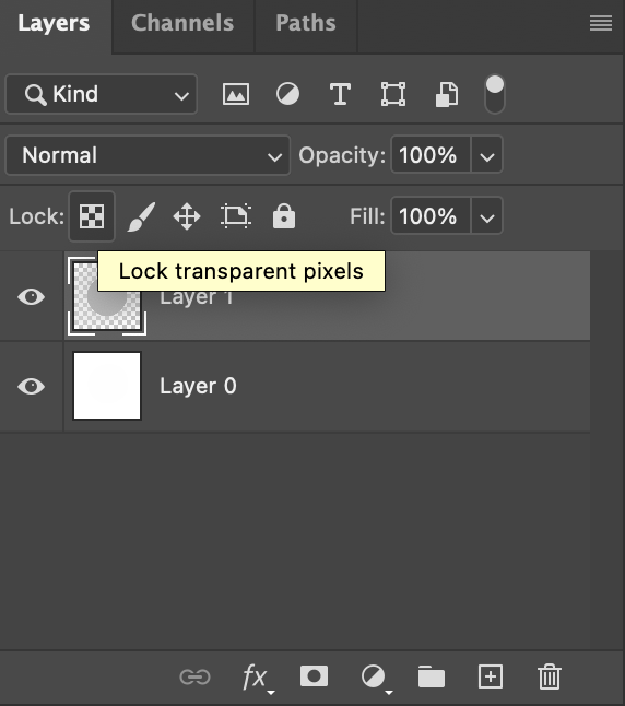 2. 원을 그린 레이어를 선택한 상태로 투명픽셀 잠금(Lock transparent pixels)을 누른다. 자물쇠가 표시되면 적용 완료.