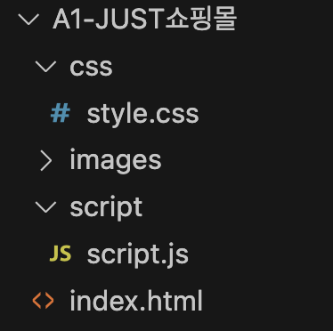 Visual Studio Code를 실행하여 작업할 폴더를 생성한 뒤에, 폴더 안에 images, script, css 폴더를 만들고 메인페이지는 최상위 폴더에 index.html로 저장한다.