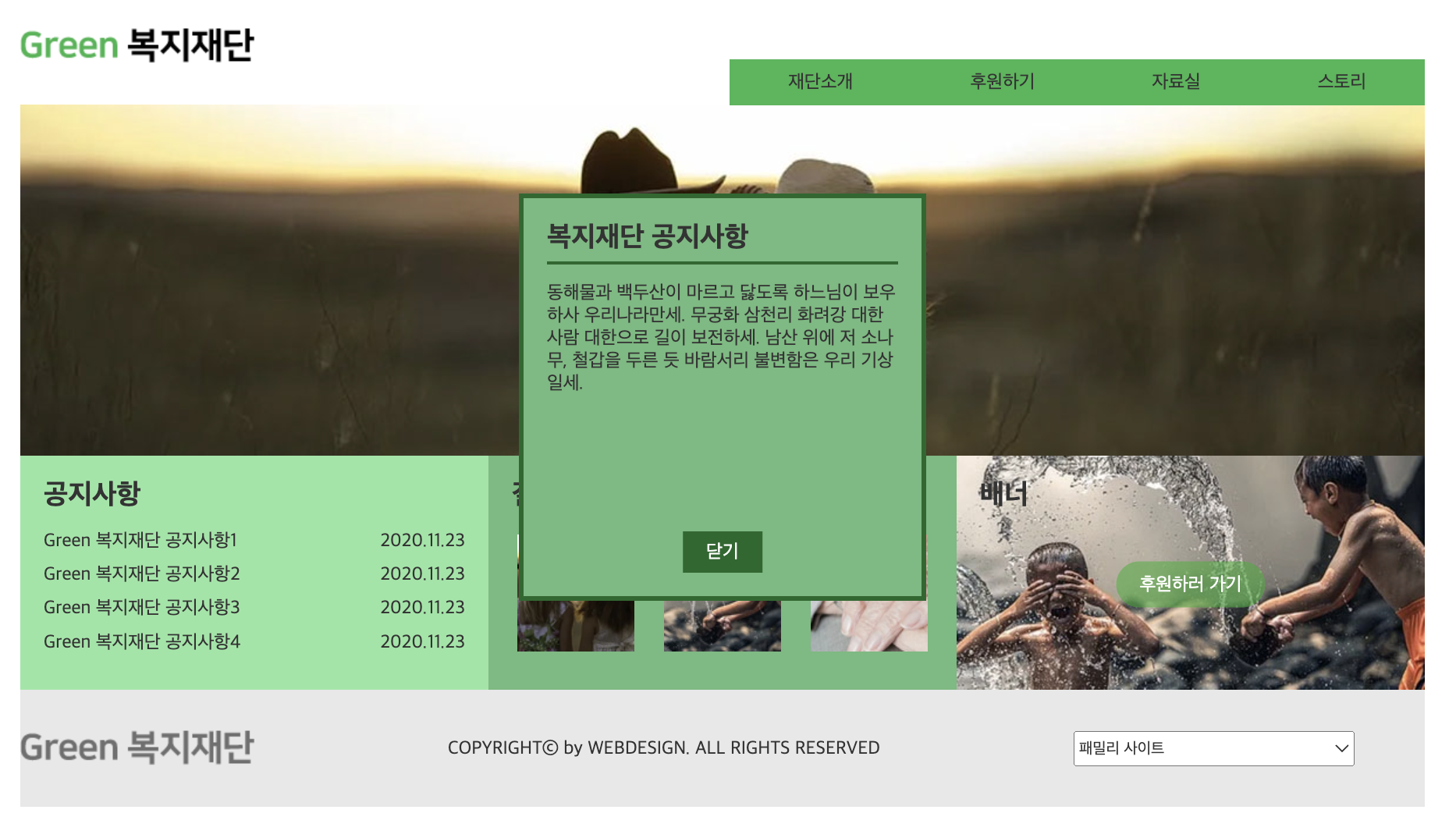 이제 마지막으로 레이어팝업 코딩을 진행한다. 공지사항의 첫 번째 콘텐츠를 클릭할 경우, 레이어 팝업창이 나타나고 팝업창의 닫기 버튼을 누르면 닫히도록 코딩을 해야한다.